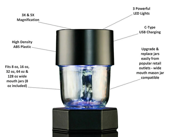 - LED magnifying airtight lid