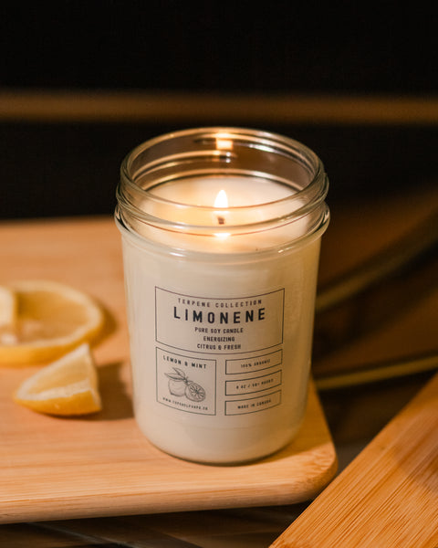 Terpenes are natural compounds found in plants that give them their distinctive aromas and flavours. We invite you to explore our full Terpene Soy Candle Collection today!